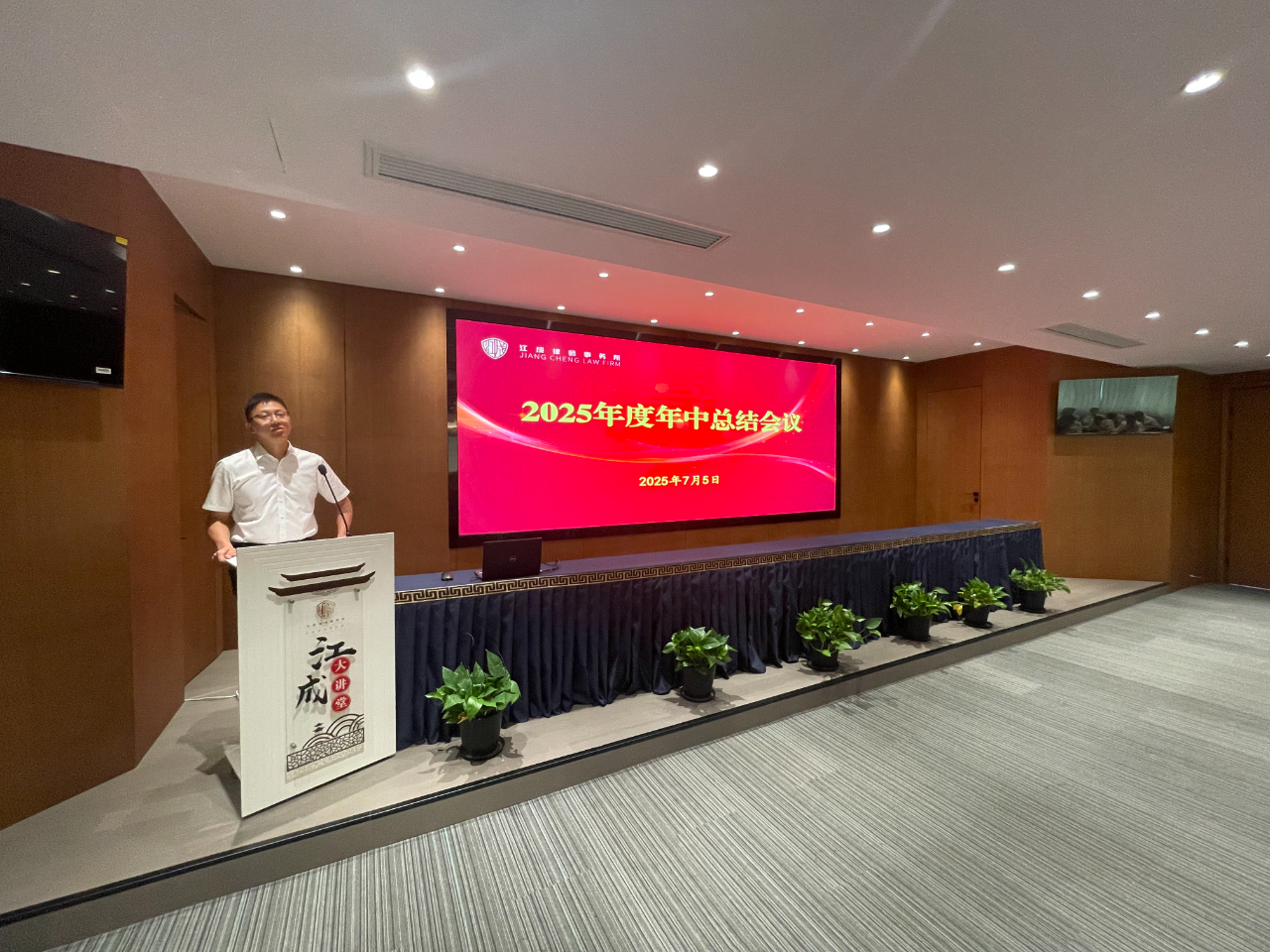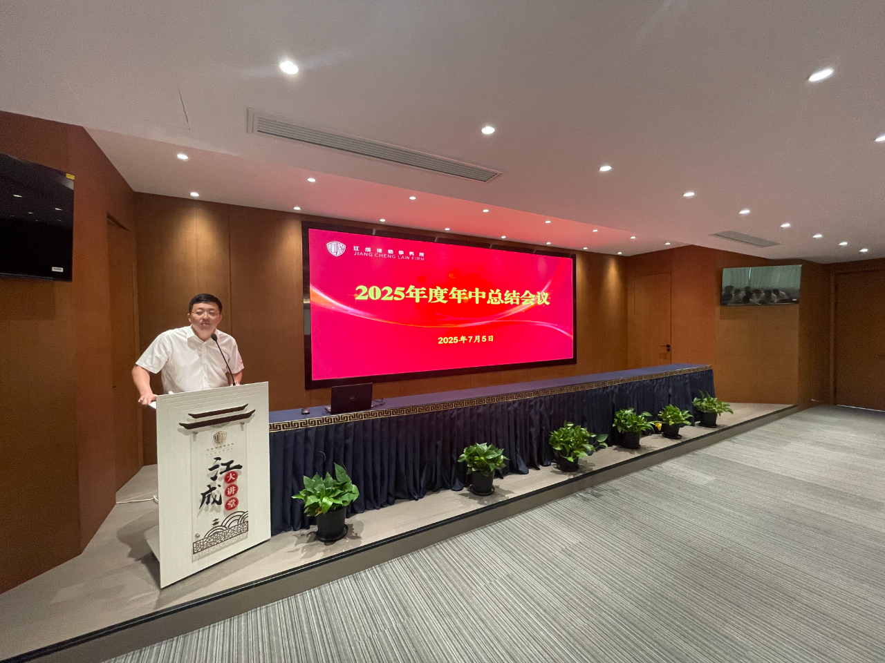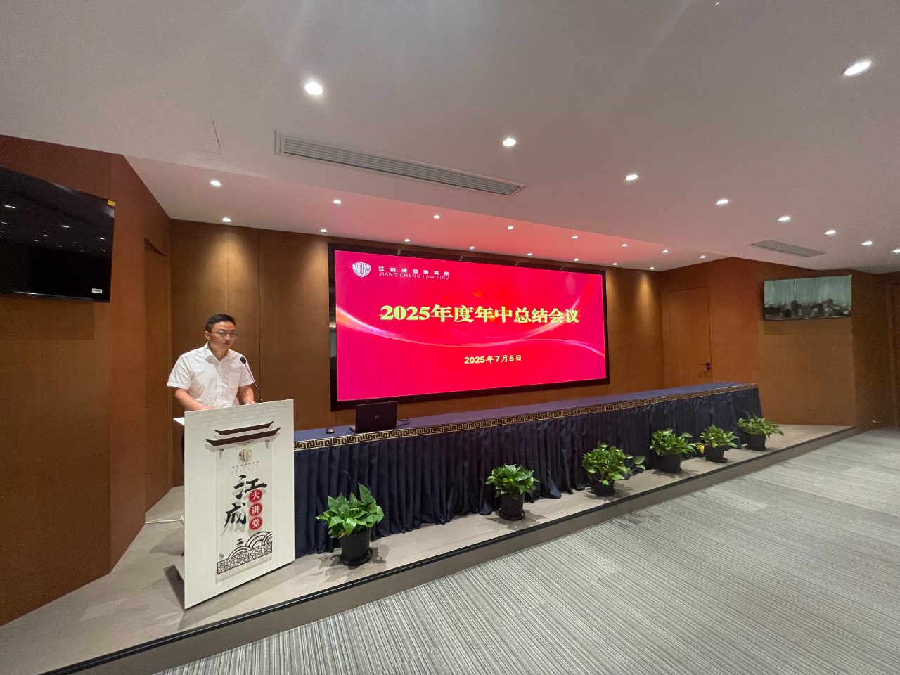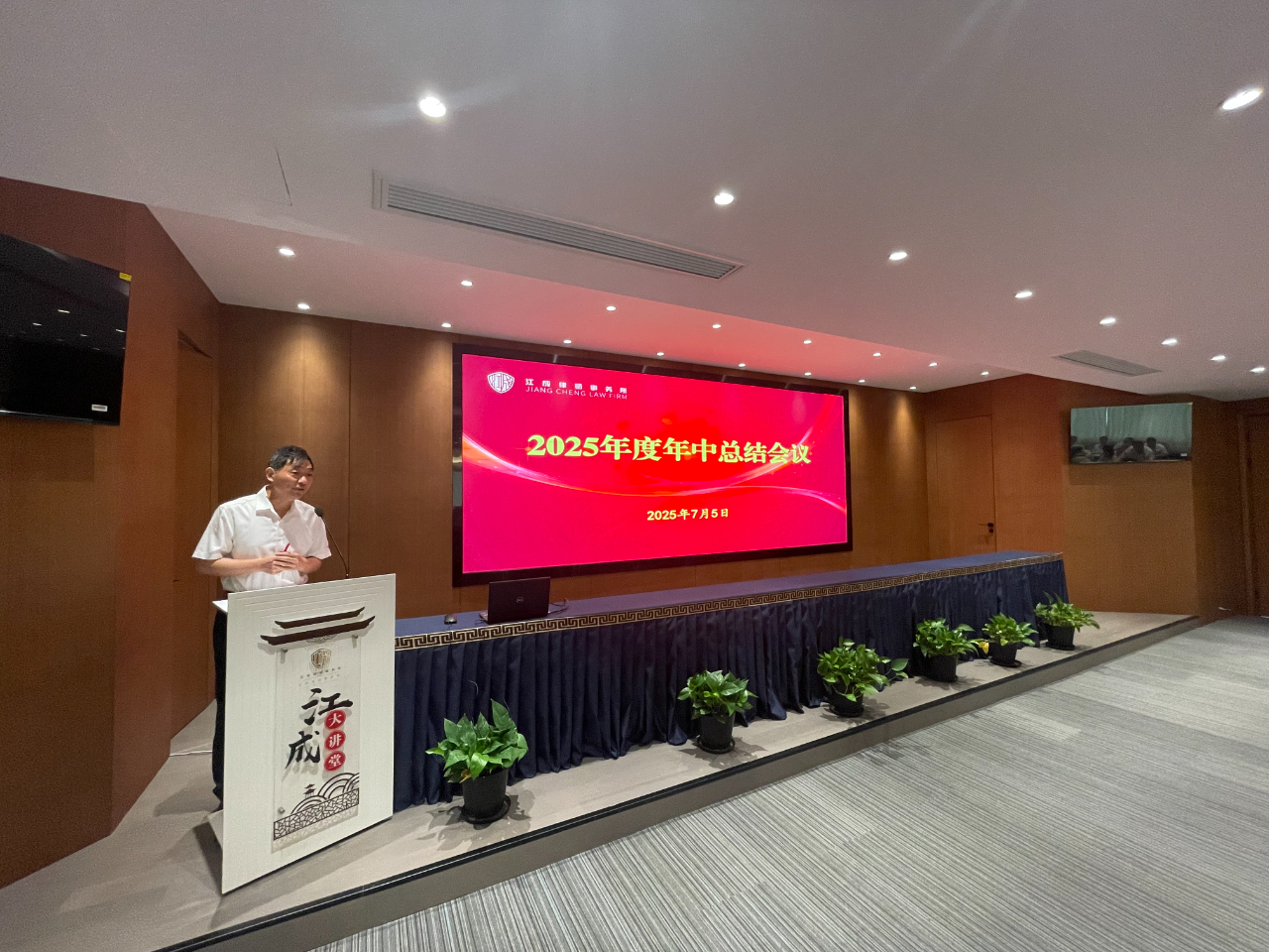 为全面落实高质量发展理念,助推律所提质增效,2025年7月5日上午,江苏江成律师事务所在办公楼三楼多功能报告厅召开了“2025年度年中总结会议”,全体成员近110人参加了本次会议,会议由管理合伙人孙亮主持。 执行主任艾滔勇全面回顾了我所2025年上半年工作。他指出,全所同仁紧密围绕高质量发展目标,在业务发展方面上半年立案登记总量再创新高,尤其是民事案件增长显著;专业建设方面依托六大业务委员会深耕细作,破产团队成果突出,多项课题入选市级项目,承办案例获评法院典型;客户服务持续深化,成功延续及新增常年和专项法律服务数量再攀新高,为政府、金融机构及重点企业提供深度支持;团队建设稳步推进,总所执业律师规模达百人,人才结构持续优化;品牌影响力显著提升,成功举办三十周年庆系列活动,律协文体节斩获佳绩,并荣获“高质量发展先进单位”等多项荣誉。面对挑战,执行主任艾滔勇指出下半年将着力推动“四个转型”:业务向主动创收拓展、服务向全生命周期价值挖掘深化、团队效能向协同共赢提升、品牌向行业权威塑造,坚定走高质量发展之路,以更高标准、更实举措推动我所高质量发展,为法治建设继续贡献江成力量! 随后,管理合伙人孔晶明向大会作了“惩戒情况及警示教育”专题发言。他梳理了行业及本所近年来在执业规范方面的相关情况,并结合具体案例进行了深入剖析,深刻阐述了合规管理对律师个人执业安全和律所长远发展的重要性。他指出,合规执业根基在于持续学习,全体律师必须严格遵守《律师法》等执业规范,将要求落实到每个环节,尤其要规范案件接收手续。他警示大家时刻警惕执业风险,坚守依法、诚信、尽职执业底线,为职业生涯筑牢根基。这场发言为全体与会者,特别是青年律师,敲响了警钟,拧紧了思想上的“合规发条”。 接着,镇江经济开发区分所主任蔡明辉、镇江丹阳分所主任眭毅、南京分所主任曹栋采从分所业务发展、团队建设、运营管理、品牌建设等方面作了2025年度上半年工作小结。 会议还安排了实务经验分享环节。张孙、孙鹏、朱翎轩、王豆豆、丁亮、傅小景、任伟宁等多名律师代表,分别围绕网络自媒体获客、线下案源开拓、专业技能提升、执业感悟及职业规划等主题作了精彩纷呈的交流发言。 最后,律所主任黄友定作了总结讲话,他强调,“严加管理、严加监督”是本次年中总结会议的主旋律。他表示,律师行业形势日益严峻,整个律师行业不容乐观,我们要积极应对挑战,做好开源节流,在现有的基础之上发展更多的顾问单位,同时不断加强专业化建设,做好业务拓展;每一位律师,尤其是青年律师,一定要找到适合自己的发展道路,将个人兴趣与律师业务相结合;青年律师更要增强忧患意识,居安思危,沉心钻研,不断提升专业能力与业务水平。最后,他号召全体同仁,务必凝聚合力,强化团队协作,以“合舟共济、奋楫前行”的姿态,群策群力,力争下半年再创佳绩!