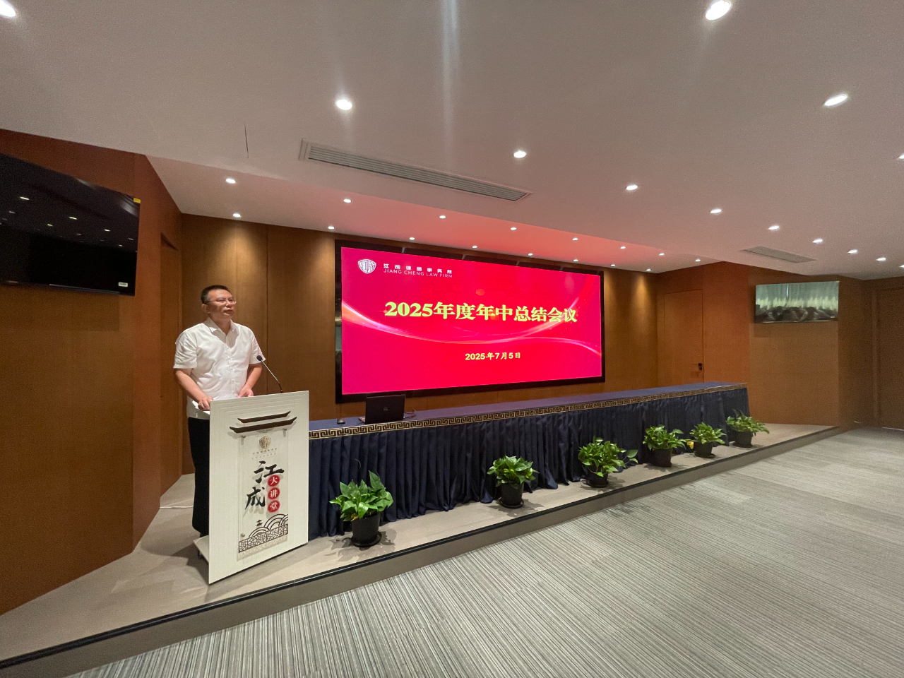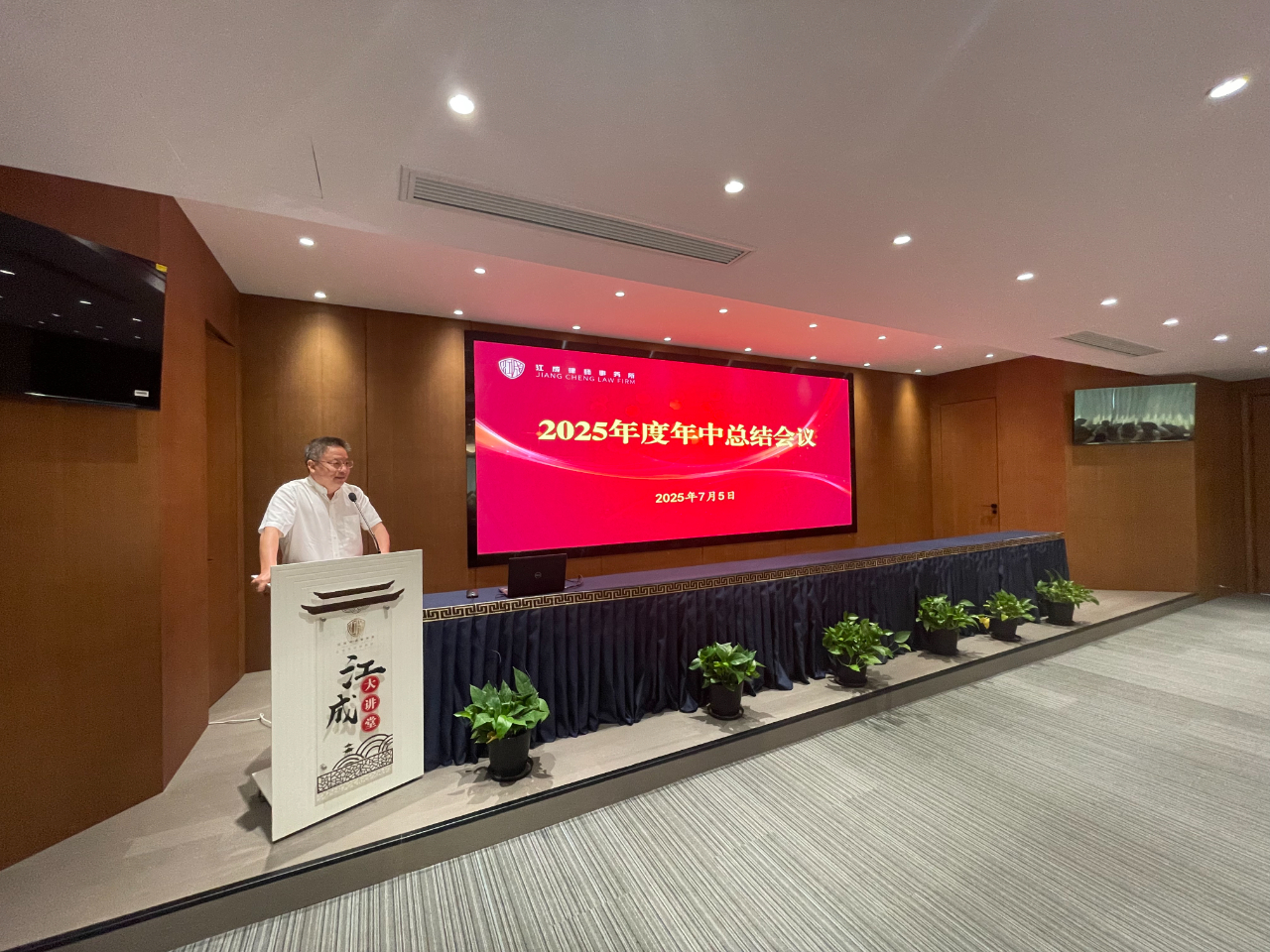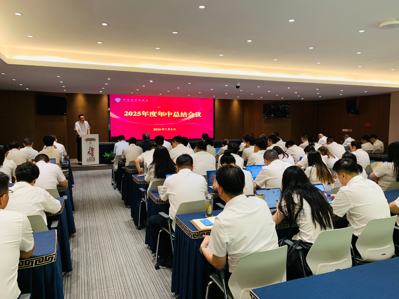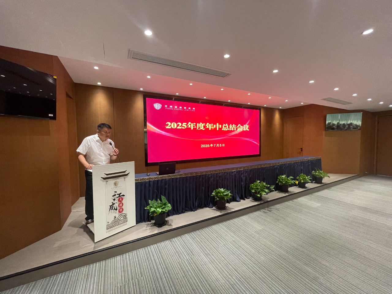 为全面落实高质量发展理念,助推律所提质增效,2025年7月5日上午,江苏江成律师事务所在办公楼三楼多功能报告厅召开了“2025年度年中总结会议”,全体成员近110人参加了本次会议,会议由管理合伙人孙亮主持。 执行主任艾滔勇全面回顾了我所2025年上半年工作。他指出,全所同仁紧密围绕高质量发展目标,在业务发展方面上半年立案登记总量再创新高,尤其是民事案件增长显著;专业建设方面依托六大业务委员会深耕细作,破产团队成果突出,多项课题入选市级项目,承办案例获评法院典型;客户服务持续深化,成功延续及新增常年和专项法律服务数量再攀新高,为政府、金融机构及重点企业提供深度支持;团队建设稳步推进,总所执业律师规模达百人,人才结构持续优化;品牌影响力显著提升,成功举办三十周年庆系列活动,律协文体节斩获佳绩,并荣获“高质量发展先进单位”等多项荣誉。面对挑战,执行主任艾滔勇指出下半年将着力推动“四个转型”:业务向主动创收拓展、服务向全生命周期价值挖掘深化、团队效能向协同共赢提升、品牌向行业权威塑造,坚定走高质量发展之路,以更高标准、更实举措推动我所高质量发展,为法治建设继续贡献江成力量! 随后,管理合伙人孔晶明向大会作了“惩戒情况及警示教育”专题发言。他梳理了行业及本所近年来在执业规范方面的相关情况,并结合具体案例进行了深入剖析,深刻阐述了合规管理对律师个人执业安全和律所长远发展的重要性。他指出,合规执业根基在于持续学习,全体律师必须严格遵守《律师法》等执业规范,将要求落实到每个环节,尤其要规范案件接收手续。他警示大家时刻警惕执业风险,坚守依法、诚信、尽职执业底线,为职业生涯筑牢根基。这场发言为全体与会者,特别是青年律师,敲响了警钟,拧紧了思想上的“合规发条”。 接着,镇江经济开发区分所主任蔡明辉、镇江丹阳分所主任眭毅、南京分所主任曹栋采从分所业务发展、团队建设、运营管理、品牌建设等方面作了2025年度上半年工作小结。 会议还安排了实务经验分享环节。张孙、孙鹏、朱翎轩、王豆豆、丁亮、傅小景、任伟宁等多名律师代表,分别围绕网络自媒体获客、线下案源开拓、专业技能提升、执业感悟及职业规划等主题作了精彩纷呈的交流发言。 最后,律所主任黄友定作了总结讲话,他强调,“严加管理、严加监督”是本次年中总结会议的主旋律。他表示,律师行业形势日益严峻,整个律师行业不容乐观,我们要积极应对挑战,做好开源节流,在现有的基础之上发展更多的顾问单位,同时不断加强专业化建设,做好业务拓展;每一位律师,尤其是青年律师,一定要找到适合自己的发展道路,将个人兴趣与律师业务相结合;青年律师更要增强忧患意识,居安思危,沉心钻研,不断提升专业能力与业务水平。最后,他号召全体同仁,务必凝聚合力,强化团队协作,以“合舟共济、奋楫前行”的姿态,群策群力,力争下半年再创佳绩!