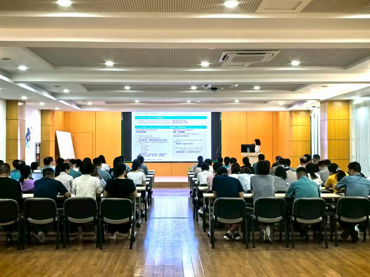 企业合规目前处于全球化迅速发展的阶段。应外商投资企业双峰格雷斯海姆医药玻璃(丹阳)有限公司、双峰格雷斯海姆医药包装(镇江)有限公司邀请,我所高级合伙人谢亮英律师于2025年8月14日上午为其开展了“企业合规经营暨国际贸易合规”的专题培训,公司管理层以及销售人员共计70余人参加了本次合规培训。 谢亮英律师结合两外商投资企业的实际情况,于第一部分讲解了企业合规管理工作的要点,内容覆盖反垄断、反腐败、内幕交易、利益冲突应对准则、数据保护、人工智能与信息安全、税务合规等方面,第二部分则介绍了贸易合规相关制度,其中重点介绍了出口管制制度,包括OFAC制裁名单,外国直接产品规则(FDP)以及禁运名单等。谢亮英律师结合大量最新经典案例,对前述制度进行了深入浅出的讲解,取得了较好的培训效果。培训进程中还与多位参训人员就实际工作中碰到相关问题进行了深度互动和探讨。 通过这次培训交流,两个企业进一步认识到合规不仅能够防范企业外部风险,保障企业经营以及贸易活动顺利开展,防止企业因违规而遭致制裁,而且企业合规还是价值创造的引擎,能为企业赢得市场声誉和地位。目前,合规建设已经成为这两个企业的主动战略选择。